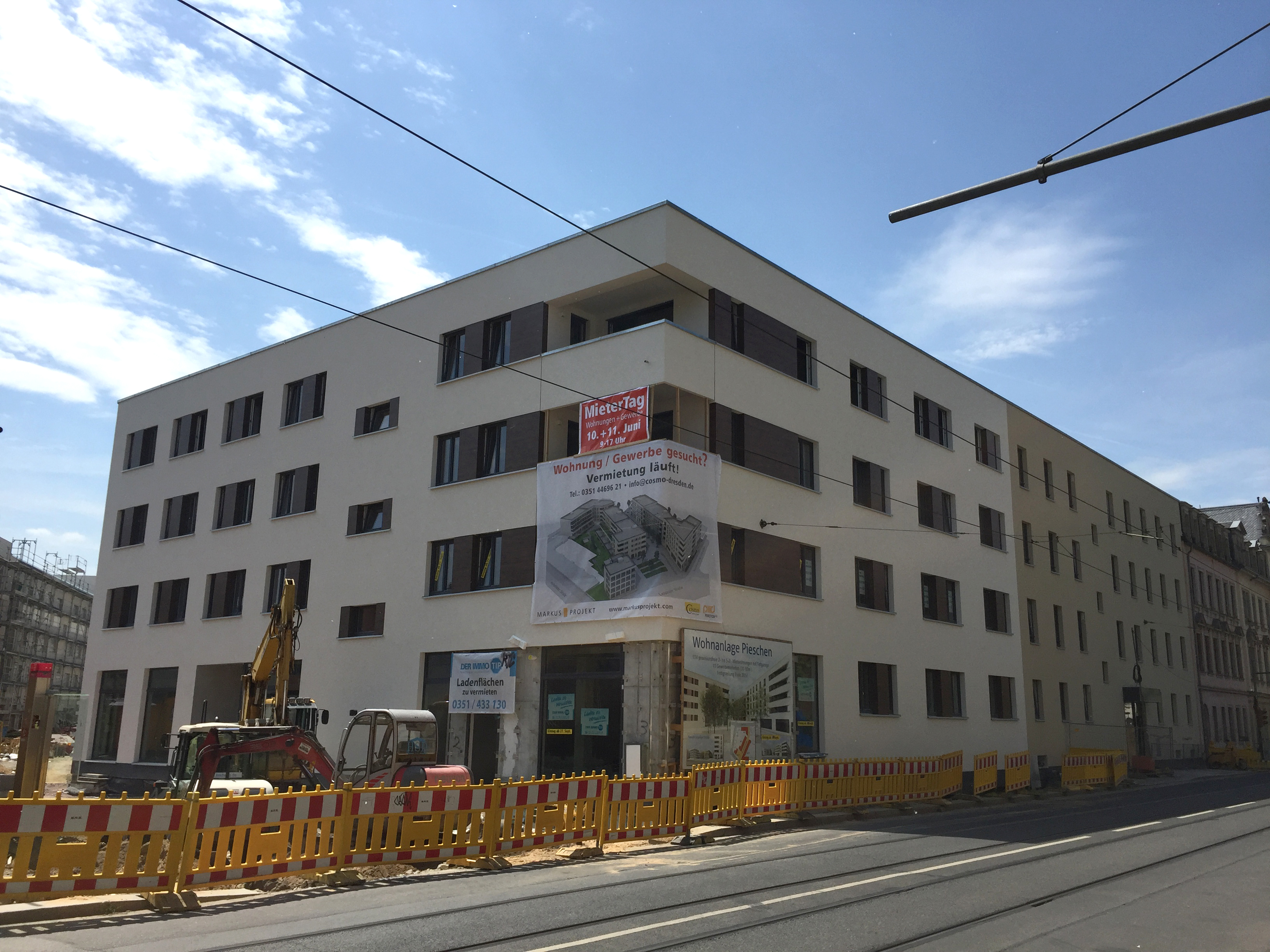 Der Mieter-Tag wurde in Zusammenarbeit mit dem Bauherren Cosmo Immobilien und DER IMMO TIP durchgeführt. DER IMMO TIP ist mit der Vermietung der Wohnungen und Gewerbeeinheiten beauftragt. Anfragen können an Susann Müller (Wohnen) oder an Daniela Semrau (Gewerbe) gerichtet werden. Telefon: 0351 433130